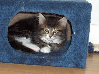 O Denys e a Blix fizeram três mesinhos dia 28. A Blixen fica connosco e, hoje, a dona do Denys veio buscá-lo para os Algarves. A acompanhá-lo foi também a Tia Margot que foi esterilizada há pouco já que a maternidade não era o seu forte. É uma boa solução esta de um adulto acompanhar um bébé, fazem companhia um ao outro e os jovens adultos vão ter muito mais atenção e mimos. Por outro lado, as meninas cá de casa agradecem não a ter sempre a mostrar que o nome Reine Margot não era em vão....era uma realeza musculada...